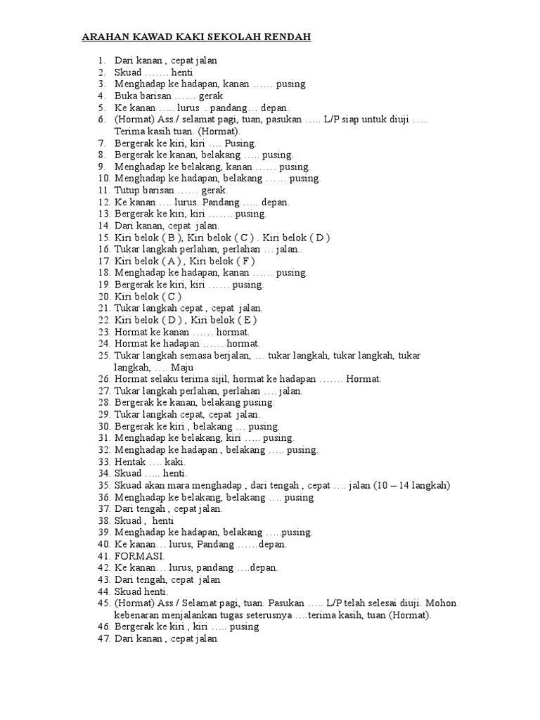 Arahan kawad kaki asas pnxk67xee14v. Sekolah jaja pun pernah joint jugak.tapi moh kita layan video ni. Muhammad aimi bin abu bakartrainer: Tukar langkah cepat, cepat jalan (kaki kanan) 13. We have 21 images about arahan kawad kaki kadet including images, pictures, photos, wallpapers, and more. Champion of 2018 malaysia marching and formation carnival,malacca,malaysia cubs from sk bandar tenggara 1 johore. Top free images & vectors for arahan kawad kaki in png, vector, file, black and white, logo, clipart, cartoon and transparent. Johan pertandingan kawad kaki negeri johor 2013 pandu puteri smk kota masai 2 pasir gudang. Download mp3 kawad kaki gratis, ada 20 daftar lagu kawad kaki yang bisa anda download. Kawad kaki pergerakan puteri islam malaysia ppim smktt 2018 duration. Under pasukan uniform krs (kadet remaja sekolah). Baris sedia melapor tabik hormat. Kawad kaki asas krs/tkrs (buka barisan, betulkan barisan, tutup barisan).