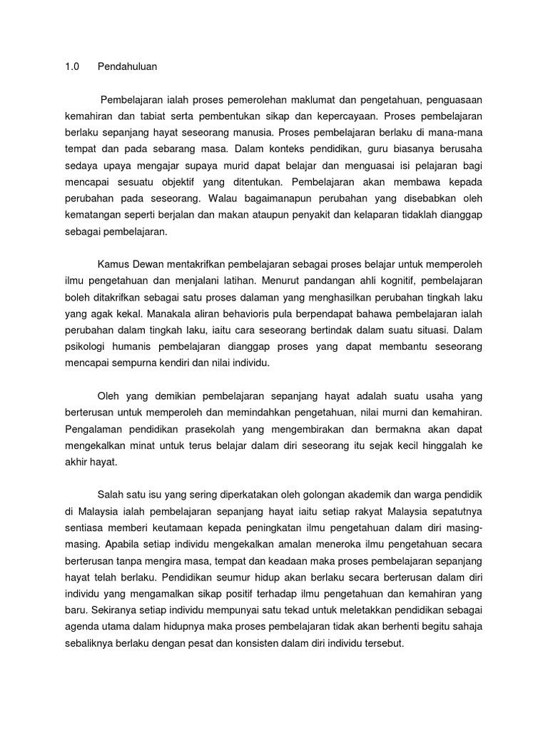 Pembelajaran Sepanjang Hayat from imgv2-2-f.scribdassets.com Apabila keputusan pmr 2005 diumumkan pada 22 disember 2005, warga pendidik menarik nafas lega bila keputusannya amat memberangsangkan. Tumbuhnya masyarakat belajar sepanjang hayat. Pembelajaran sepanjang hayat berperanan besar dalam memastikan kemampuan yang ada dalam modal insan digilap agar dapat menghasilkan satu tahap kecemerlangan yang diinginkan oleh seseorang individu masyarakat dan juga 3 negara. Program pembelajaran sepanjang hayat psh di unisza. Setiap individu perlu bertanggungjawab bagi pembelajaran diri sendiri. Belajar sepanjang hayat kurikulum diarahkan kepada proses pengembangan, pembudayaan, dan pemberdayaan peserta didik yang berlangsung sepanjang hayat. Peningkatan kapasitas kelembagaan pusat studi wanita. As of today we have 78,970,905 ebooks for you to download for free.